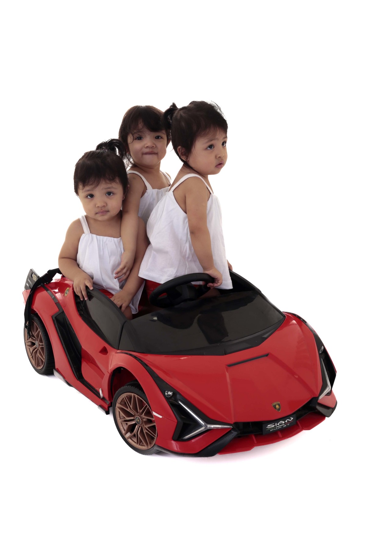 Ensaio fotográfico de trigêmeas feito em estúdio em Santo André - São Paulo.